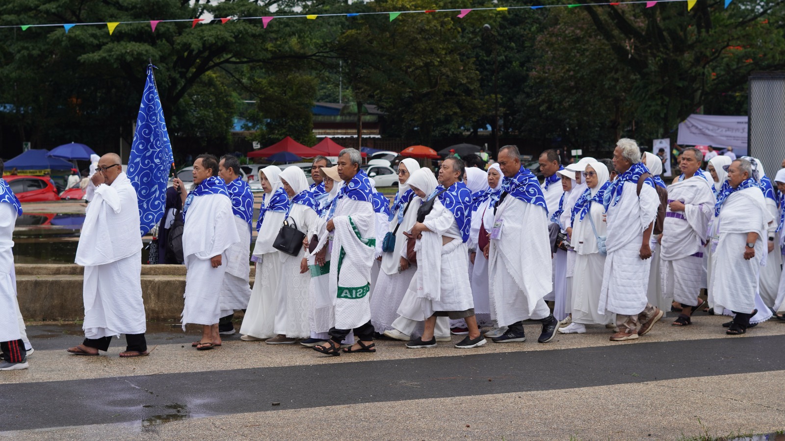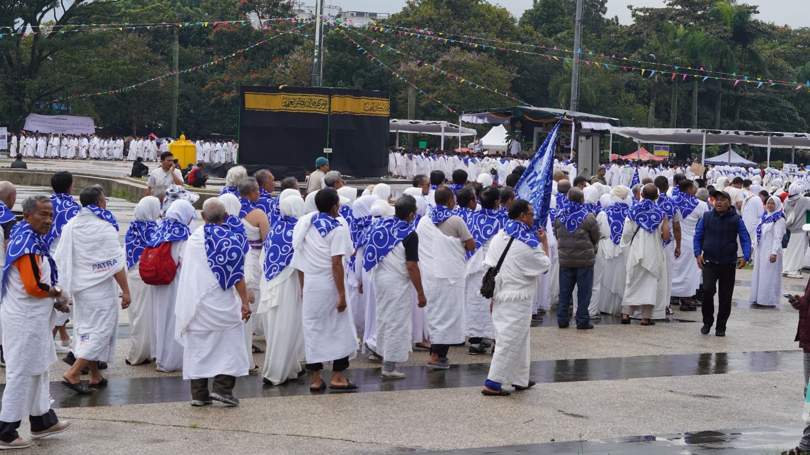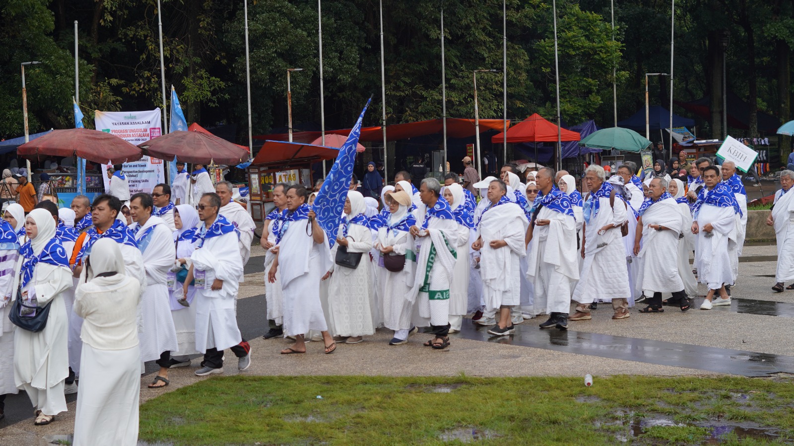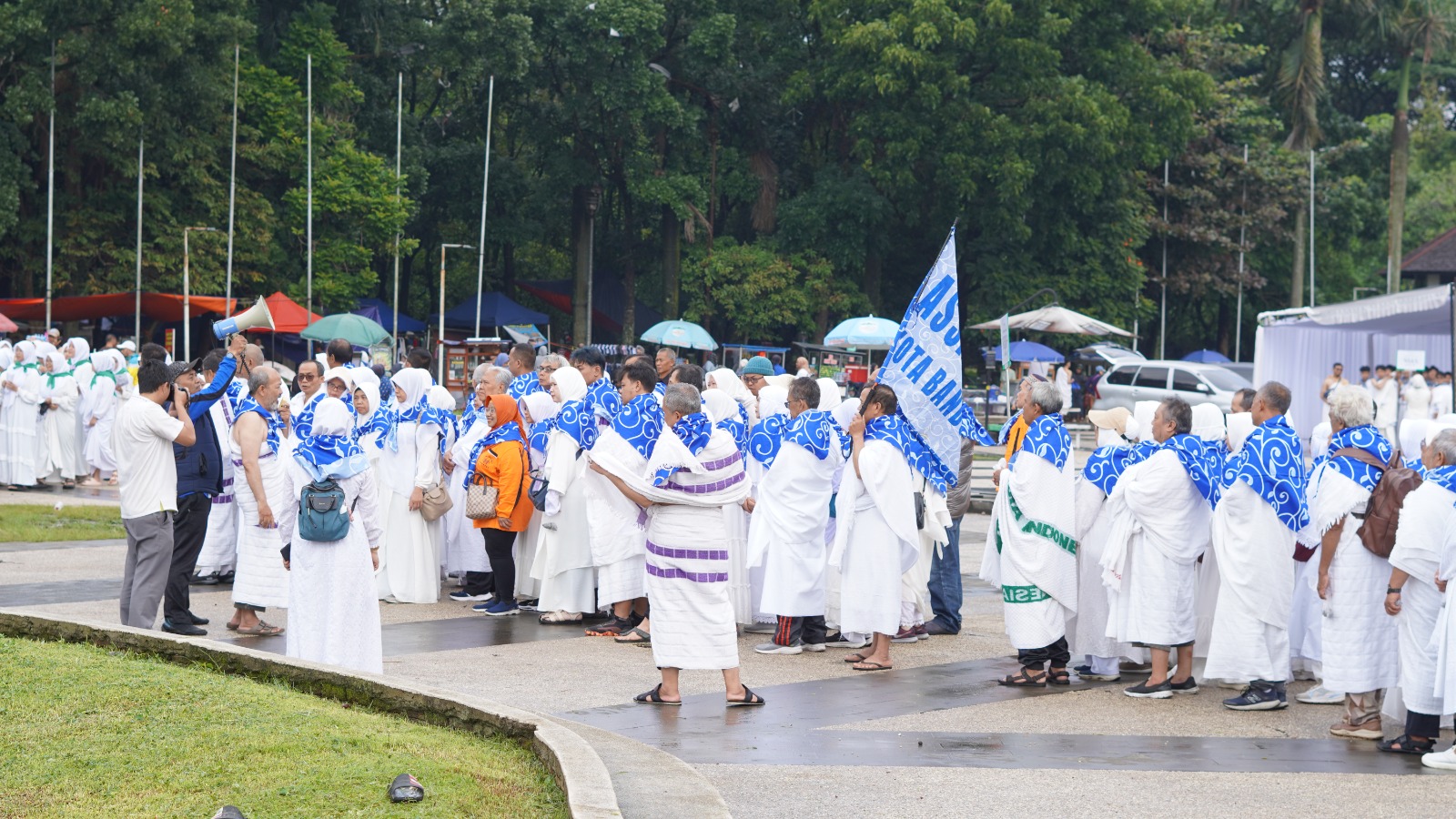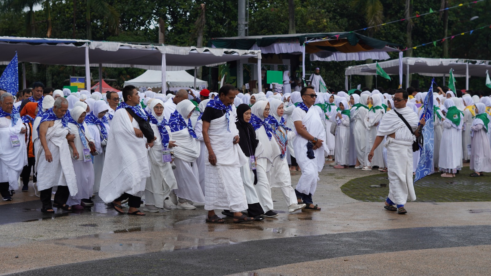 Bertempat di Lapangan Tegallega Bandung, para calon jamaah mempraktikkan rangkaian ibadah haji sejak pagi hari dalam suasana yang tertib dan khidmat. Pakaian manasik serba putih yang dikenakan jamaah menjadi simbol kesucian niat dan kesamaan tujuan, bahwa seluruh perbedaan dilebur dalam satu niat mulia untuk memenuhi panggilan Allah SWT menuju Baitullah.